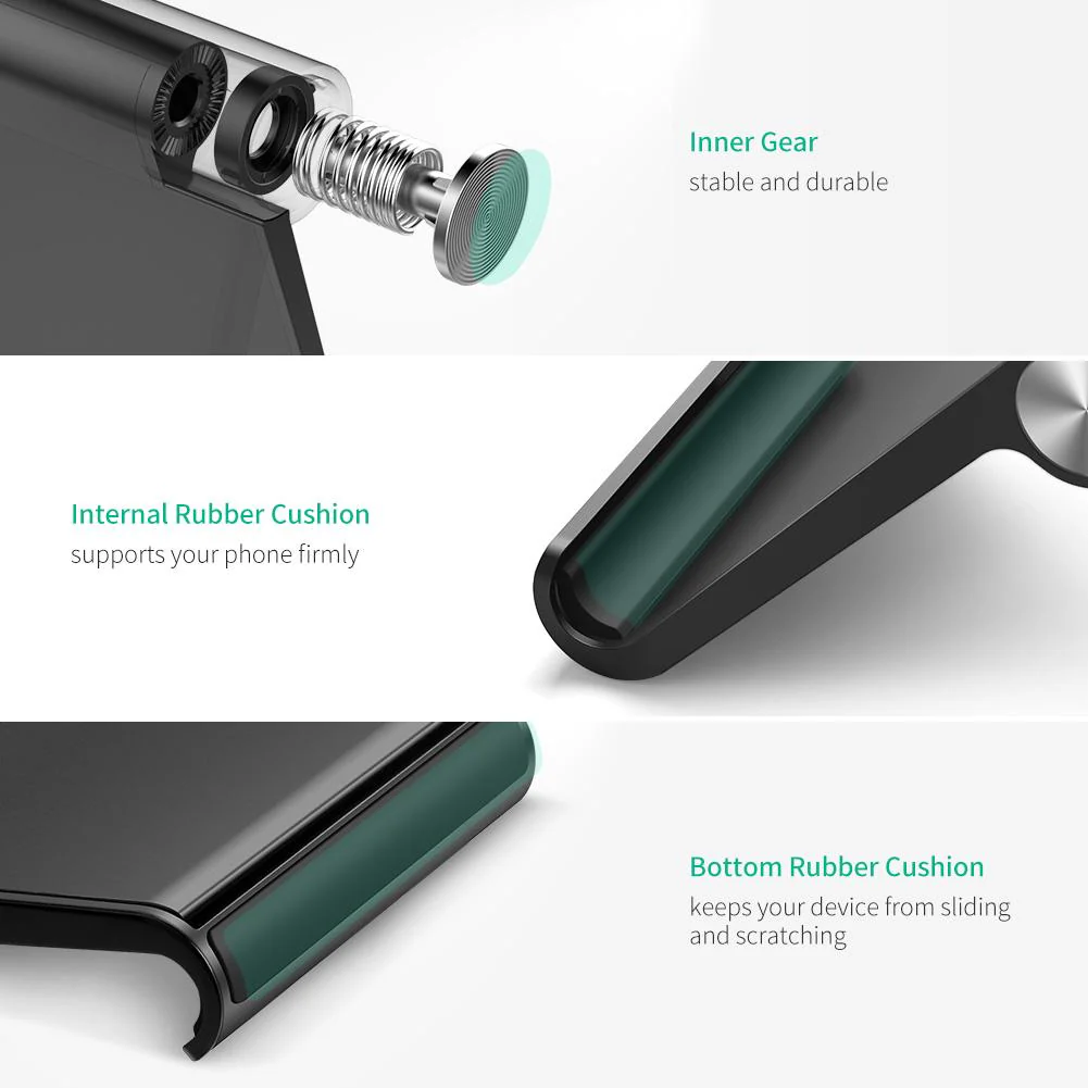 The cell phone stand for desk can fold flat for travel or storage, with compact size to carry in a backpack or bag.
