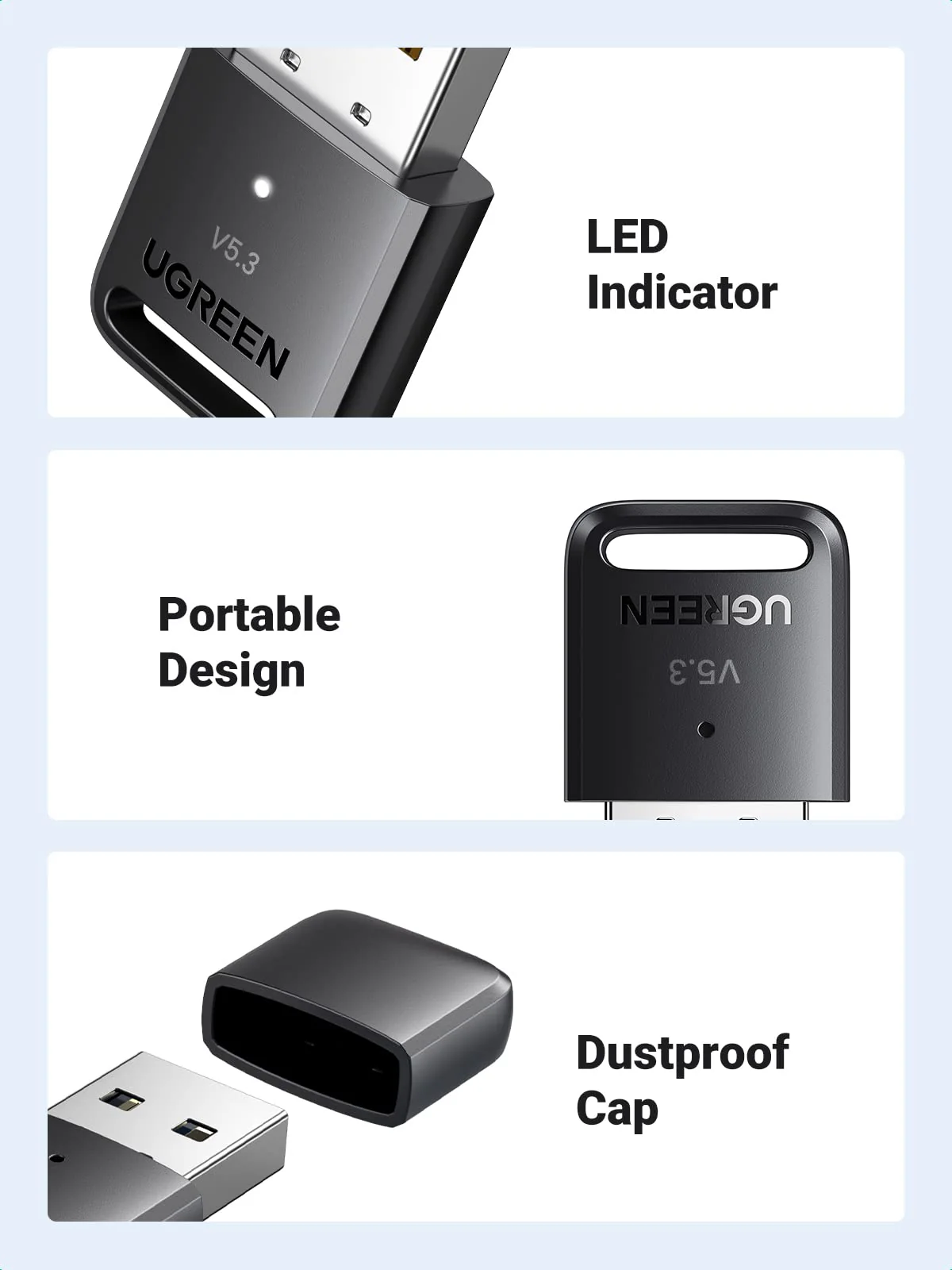 Q1: Please disable/uninstall any Bluetooth related devices and reboot your PC before using the UGREEN 5.3 Bluetooth adapter.